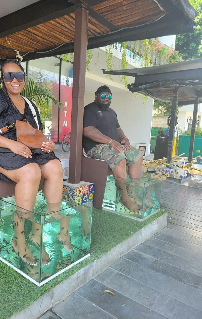 Mrs. Pendergrass enjoying a Limestone foot massage in Jamaica